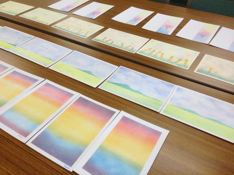 パステル画、水彩画、羊毛作品などの展示販売のほか、2015年のカレンダー、クリスマスカード、書籍の販売をしています。